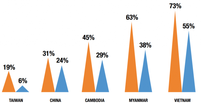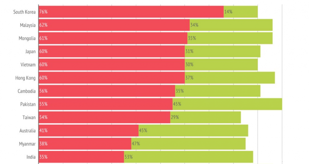 Quốc gia có tỷ lệ cao nhất là Úc và Đài Loan, cũng là quốc gia có tỷ lệ hối lộ thấp nhất. Mặc dù có tỷ lệ hối lộ khá cao nhưng Indonesia, Cambodia và Thái Lan lại khác lạc quan về việc chống tham nhũng.