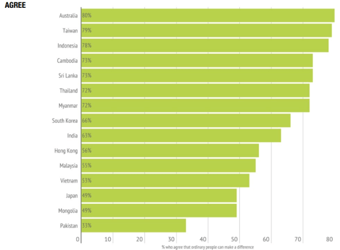 Chỉ có 53/100 được hỏi đồng ý rằng một người bình thường có thể làm gì đó để chống tham nhũng.
