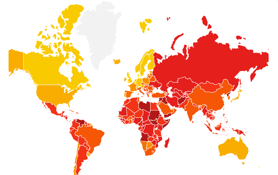 Bản đồ Chỉ số tham nhũng toàn cầu.