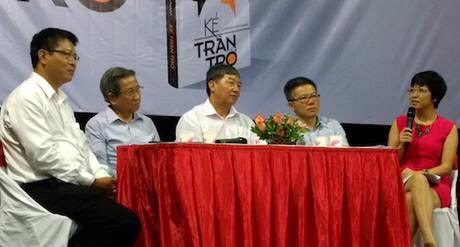 Các khách mời giao lưu trong chương trình ra mắt sách “Kẻ trăn trở”. Ảnh: H.T.