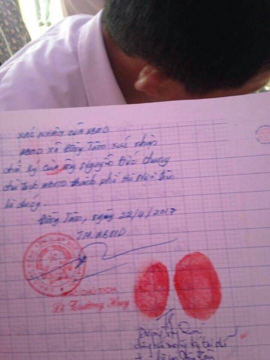 Dưới BẢN CAM KẾT, Ông không chỉ ký tươi mà còn điểm chỉ đỏ cùng ông Dương Trung Quốc (đại biểu QH). Bên dưới đó, UBND xã Đồng Tâm đã xác nhận chữ ký của ông Nguyễn Đức Chung là đúng, và đóng dấu đỏ.
