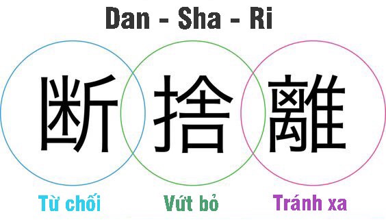 Tinh thần của Danshari gói gọn trong chính 3 từ viết tắt tạo thành cái tên của lối sống này: Dan – nghĩa là từ chối (đem về nhà những vật dụng không cần thiết), Sha – nghĩa là vứt bỏ (những thứ lỉnh kỉnh vướng víu trong nhà) và Ri – là tránh xa (cám dỗ mua sắm vật chất).
