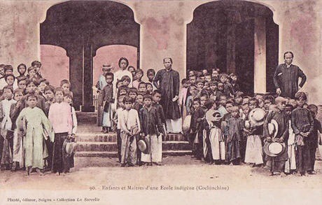 Thầy trò một trường bản xứ ở Sài Gòn. Ảnh tư liệu