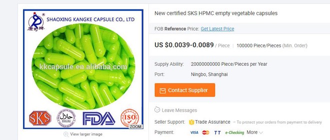 Giá thành vỏ nang thuốc rỗng rao bán trên Alibaba.