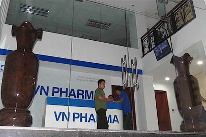 Cơ quan công an tiến hành kiểm tra tại trụ sở Công ty Cổ phần VN Pharma. Ảnh: Giaothong