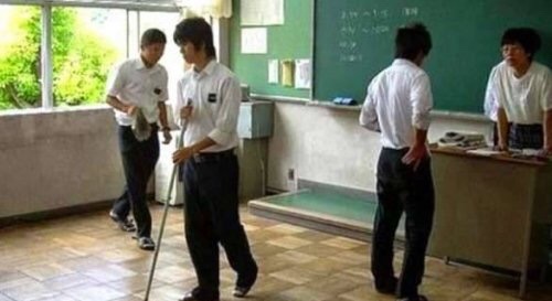 Học sinh Nhật cần phải tự mình quét dọn khu vực trong trường học.