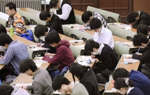 Vào năm cuối trung học, học sinh phải lựa chọn trường mà các em muốn theo học, đồng thời phải trải qua kì thi của trường đại học đó. Nếu như trượt thì sẽ không thể vào được đại học. Thế nhưng sự cạnh tranh trong kì thi này rất quyết liệt, chỉ có 76% học sinh trung học có thể vào được đại học, cũng vì điều này mà thời gian chuẩn bị thi đại học được gọi là “địa ngục”.