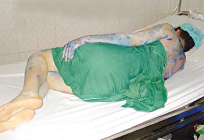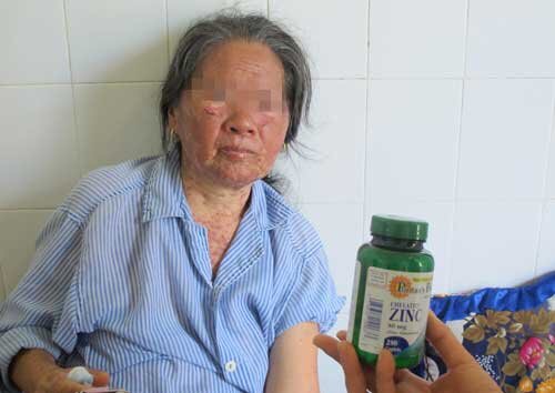 Bệnh nhân Đậu Thị T. (67 tuổi, Nghệ An) nhập viện với biểu hiện của hội chứng Steven Johnson điển hình: hai mắt dính lại không mở được, loét da nhiều vị trí, xuất hiện những bọng nước khổng lồ trên cơ thể. Theo lời kể của con gái bà T., bà bị tiểu đường nhiều năm, gần đây lại hay đau nhức các đầu ngón tay nên được bác sĩ kê toa thuốc trị bệnh kèm theo một loại thực phẩm chức năng có giá 400.000 đồng/ hộp, không hề có hướng dẫn hay vỏ hộp đi kèm. Chỉ sau khi uống thuốc ba ngày, bà T. đã cảm giác bứt rứt, khó chịu. Sang ngày thứ năm, mắt bà đỏ ngầu rồi khép chặt dần lại, không mở ra được, khuôn mặt biến dạng, miệng phồng rộp và lịm đi không hay biết gì.