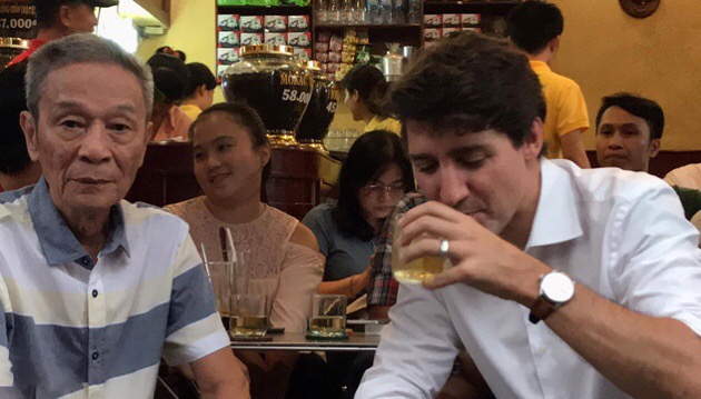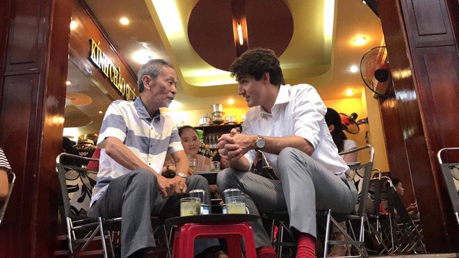 Thủ tướng Trudeau tại quán cà phê ở TP.HCM.