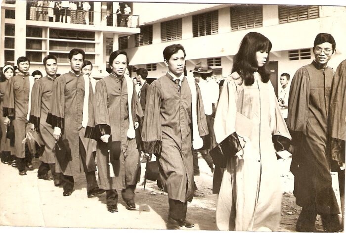 Đề thi đại học do các trường tự phụ trách. Ngày thi lệch nhau. Trường nào cũng công bố danh sách thi đậu chính thức và dự bị. Do đó tôi cảm thấy rất trật tự nề nếp chứ không lộn xộn như bây giờ. Nếu gọi danh sách chính thức mà thiếu thì truờng gọi đến dự bị. Đơn giản vậy thôi. Nhưng có lẽ hồi đó vấn đề hối lộ, bán đề thi không kinh khủng để đến nỗi Bộ Giáo Dục phải xen vào ra đề chung như bây giờ. Lại cũng do vấn đề tiền lương. Khi đồng lương không đủ sống thì tư cách con người suy giảm.