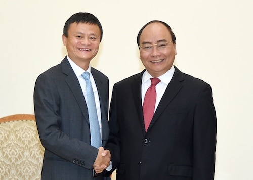 Thủ tướng Nguyễn Xuân Phúc (phải) tiếp Chủ tịch Alibaba – Jack Ma (trái) tại Hà Nội. (Ảnh: VGP)