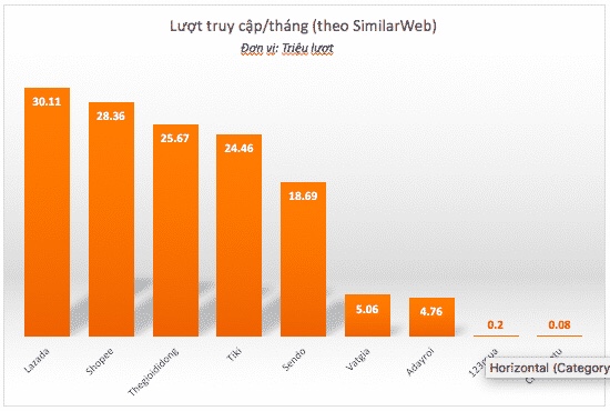 Lượt truy cập (đơn vị: triệu lượt) tại một số website TMĐT Việt nam qua SimilarWeb, số liệu ngày 20/7/2018