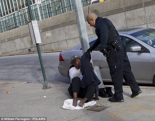 Hình ảnh cảnh sát Mỹ tặng áo cho người vô gia cư. (Ảnh dẫn theo Pinterest)
