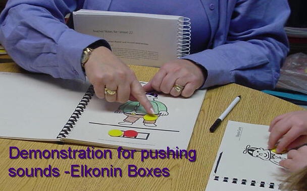 “Elkonin boxes are an instructional method used in the early elementary grades especially in children with reading difficulties and inadequate responders in order to build phonological awareness by segmenting words into individual sounds.”