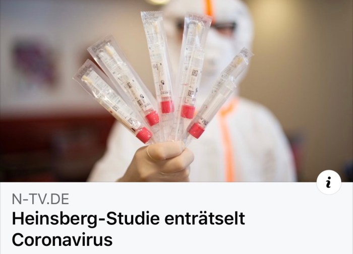 Virus Corona có lẽ không gây chết người nhiều như sợ hãi: Trong khi Đại học Johns Hopkins của Mỹ báo cáo tỷ lệ tử vong gần hai phần trăm đối với Đức, kết quả tạm thời của một nghiên cứu đang diễn ra ở quận Heinsberg ở North Rhine-Westphalia cho thấy cái gọi là gây tử vong của Sars CoV-2 thấp hơn đáng kể. Nhóm nghiên cứu do nhà virus học Hendrik Streeck dẫn đầu đã phát hiện ra rằng chỉ có 0,37% bệnh nhân Covid-19 đã chết sau khi bị nhiễm virus này.