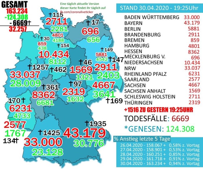 Cả nước Đức hôm nay có hơn 160.000 người bị nhiễm Virus Wuhan , nhưng họ đã cứu sống hơn 124.000 người. Thật là tuyệt vời, một con số đáng ngưỡng mộ.