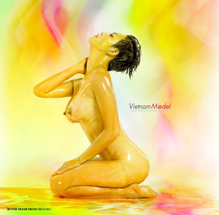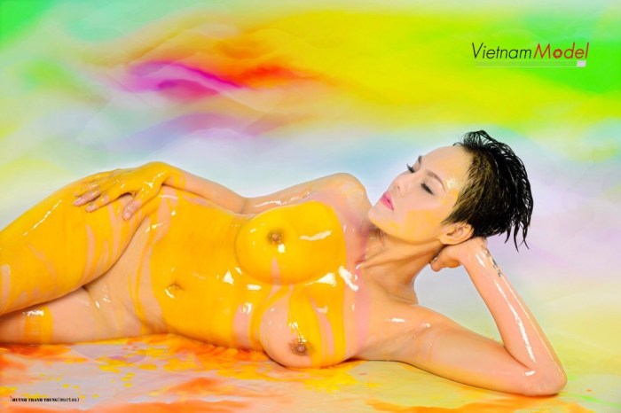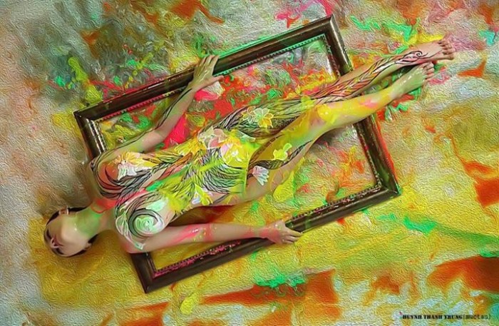 Họa sĩ body painting Huỳnh Thanh Trung (Mực tàu) cùng ekip của mình đã thực hiện một bộ ảnh hết sức phá cách và độc đáo cùng người mẫu Võ Thanh Lio Thùy tại studio Lý Lan – Quận 7.