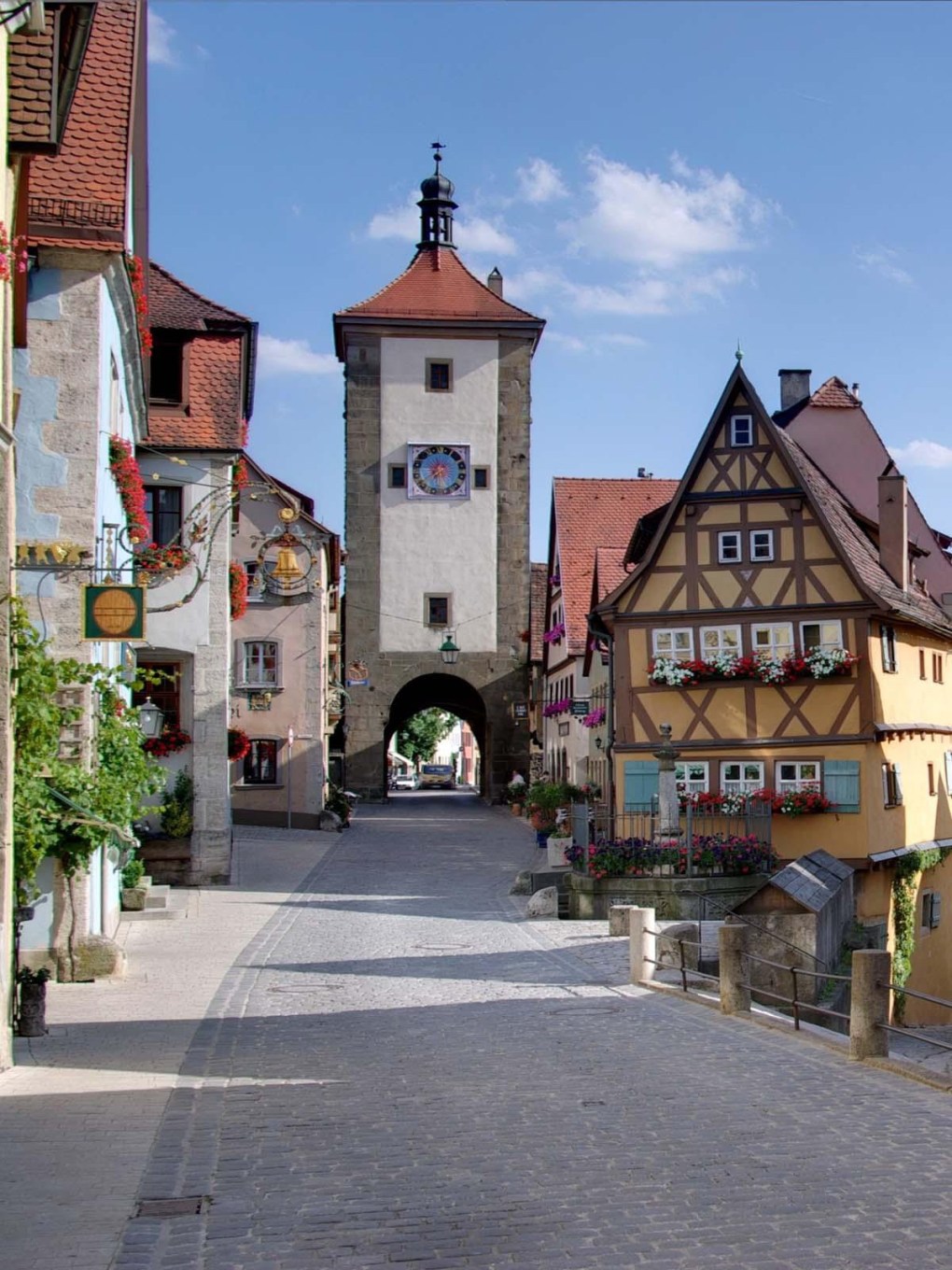 Rothenburg ob der Tauber là một thành phố của Đức ở phía bắc Bavaria được biết đến với kiến trúc thời Trung cổ. Những ngôi nhà nửa gỗ có thể được tìm thấy dọc theo những con đường lát đá cuội của khu phố cổ. Các bức tường thành bao gồm nhiều cổng và tháp được bảo tồn cũng như một lối đi có mái che phía trên bức tường. Ở St. Jakobskirche có một chiếc bàn thờ kiểu Gothic muộn, được thiết kế công phu bởi thợ khắc gỗ Tilman Riemenschneider. Tòa thị chính thời Trung cổ có một tòa tháp với tầm nhìn toàn cảnh