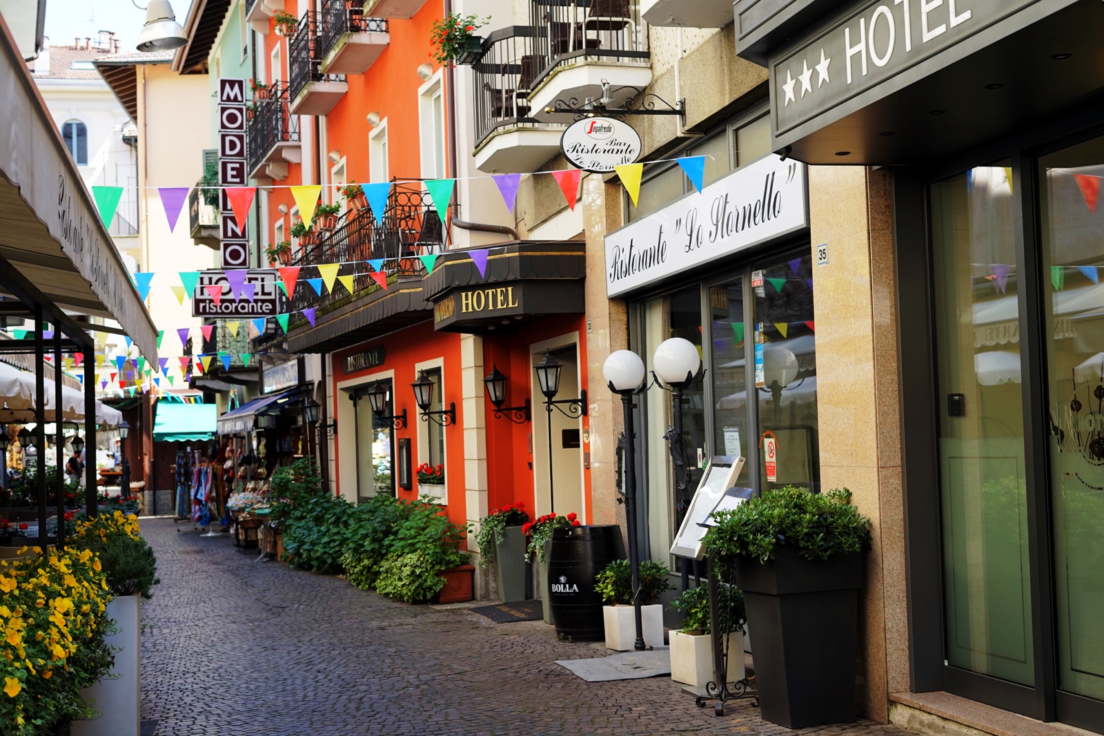 Ở những nơi, nó mở rộng đến công viên kích thước với khu vườn cận nhiệt đới và tác phẩm điêu khắc hiện đại lót lối đi. Đối mặt với nó là những tòa nhà cổ điển nổi bật, bao gồm cả thế kỷ 18 Palazzo Riva. Từ mọi điểm trên đường đi dạo đều có tầm nhìn ra quang cảnh hồ nước, được bao quanh bởi những ngọn núi xung quanh.
