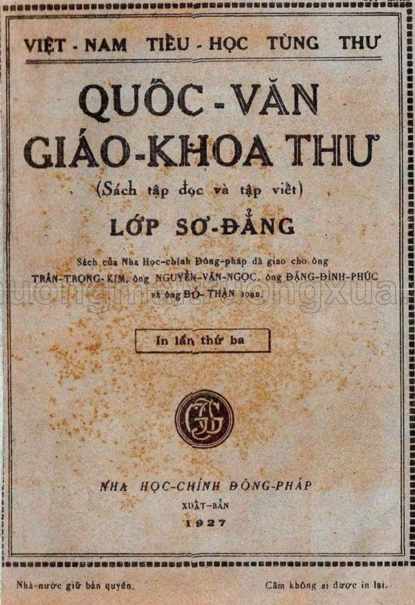 Sách Quốc văn Giáo khoa thư lớp Sơ đẳng, bản in năm 1927 (Nguồn: thuongmaitruongxua.vn)